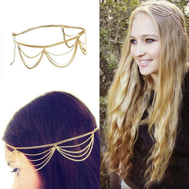 Jiaroswwei Women Boho Multilayer Chain Fringe Tassel Metal Head Band Headpiece Hair Jewelry Walmart Com