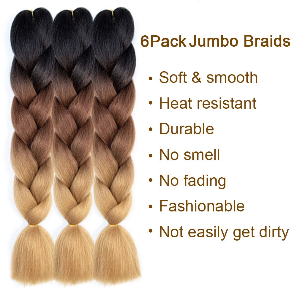 Amazon Com Aqinbel Braiding Hair 24 Inch 6pcs Lot Ombre Jumbo Braids Hair Extension High Temperature Jumbo Braids For Twist Crochet Braiding Hair Black To Dark Brown To Light Brown Everything Else